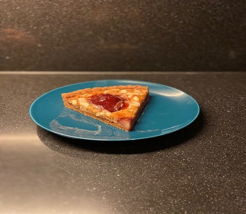 Bak de taart in ongeveer 25 minuten af. Check of de cake gaar is. Laat hem 15 minuten afkoelen in de vorm en los hem op een snijplak. Geef de peren een mooi glanslaagje door een kwastje door de gelei te halen, en over de peren te smeren. Geniet van deze heerlijke taart! Hij wordt met de dag lekkerder!
